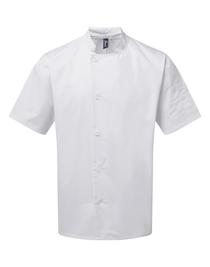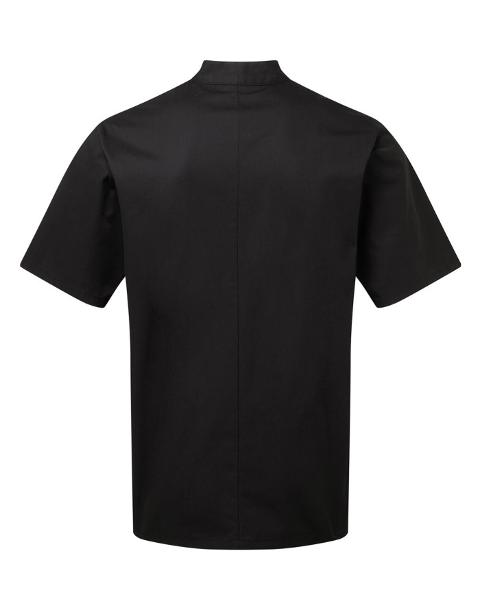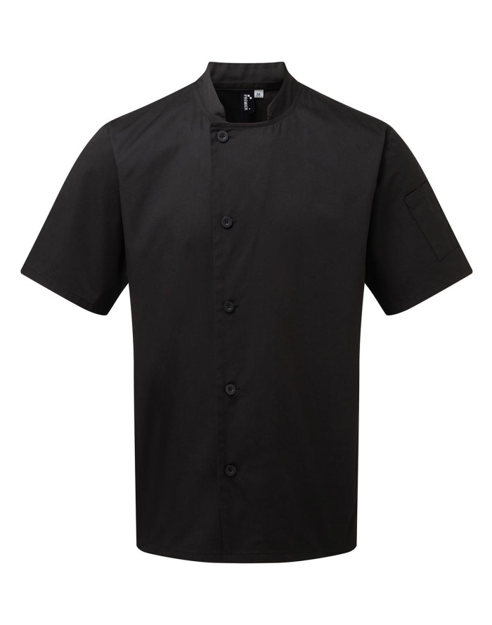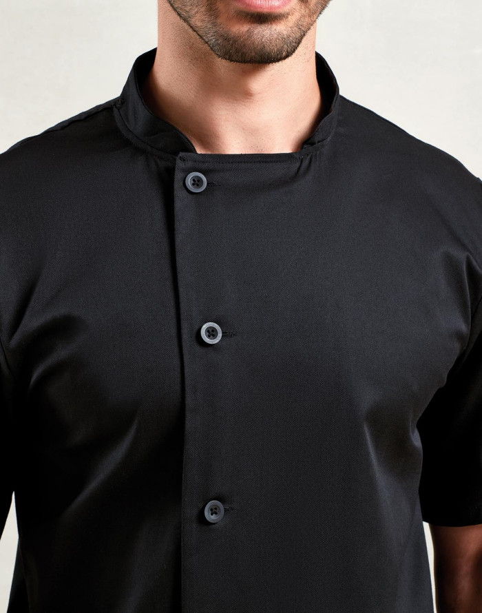 Izturīga pavāra jaka ar īsām piedurknēm, kas aiztaisāma ķermeņa labajā pusē ar piecām izturīgajām sveķu pogām. Kreisās piedurknes augšdaļā ir ērts divu kabatu nodalījums pildspalvai. Šī jaka ir veidota ar mandarīnu apkakli, pieejama melnā un baltā krāsā.