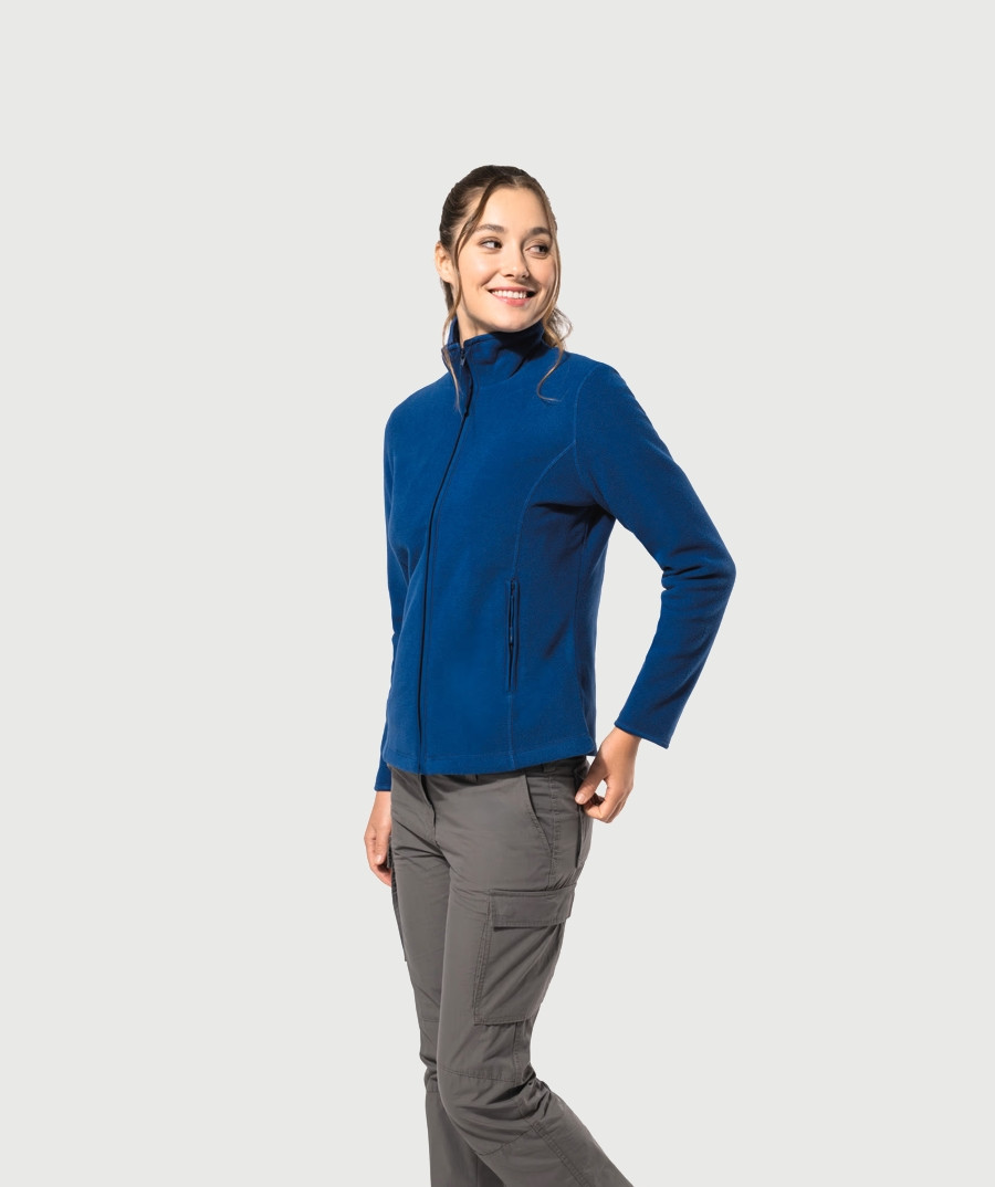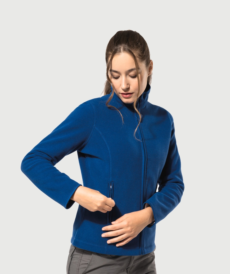 Flīsa jaka no mikroflīsa, kura nesaveļas Aizdare ar rāvējslēdzēju jakas krāsā Divas sānu kabatas ar rāvējslēdzēju Pieguļošs modelis