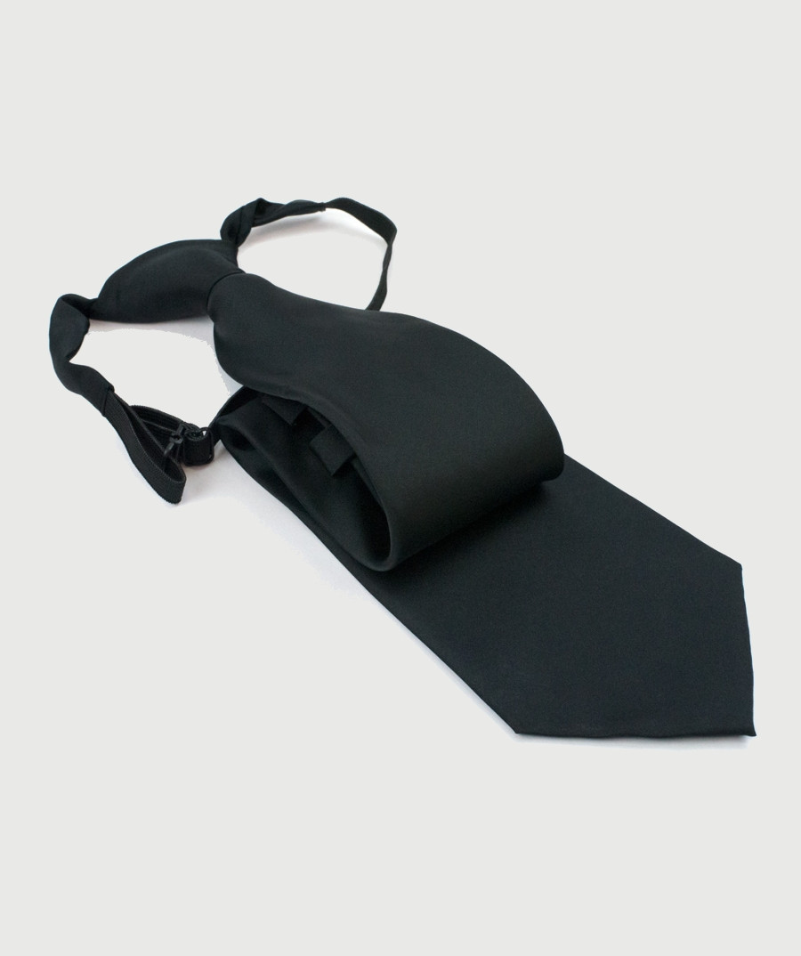 Melnas formas kaklasaite ar gumiju. Elastīgo joslu var regulēt un nostiprināt ar āķi.