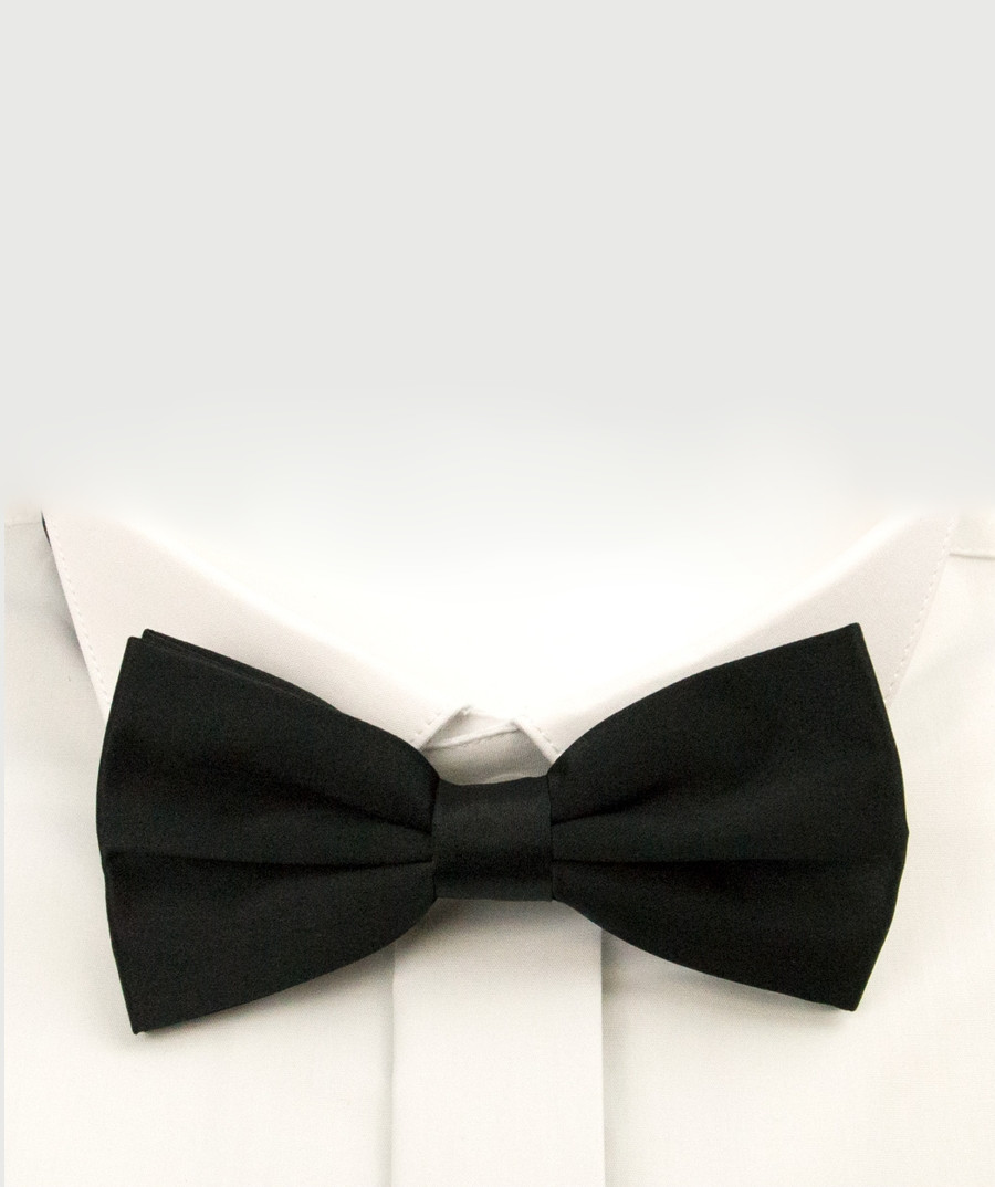 Vīriešu satīna tauriņš melnā krāsā ar regulējamu stiprinājuma lentu.